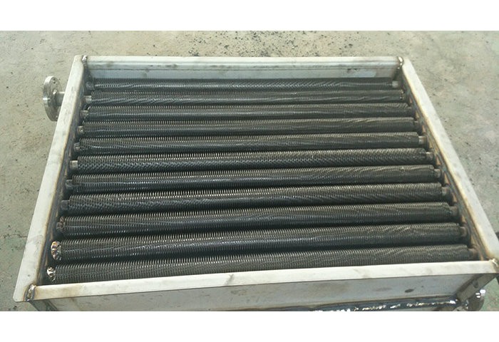 2.SRZ空氣換熱器主要由順空氣流向的三排散熱管束組成,叉排排列,SRZ散熱器翅片管均用Ф22× 2mm無縫鋼管繞製上16×0.5mm皺折鋼帶而成,呈螺旋狀,SRZ鋼製散熱器片距有5mm-大“D”,6mm-中“Z”、8mm-小“X” 三類,共三十八種規格;