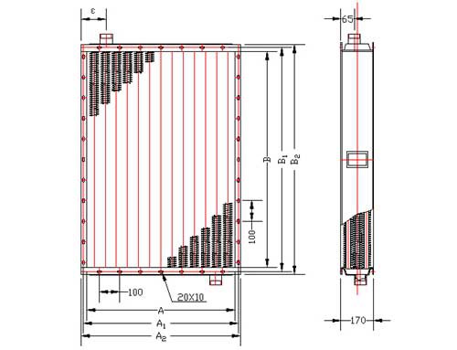 ①-表示鋼製散熱器通風正截麵長尺寸分米化整